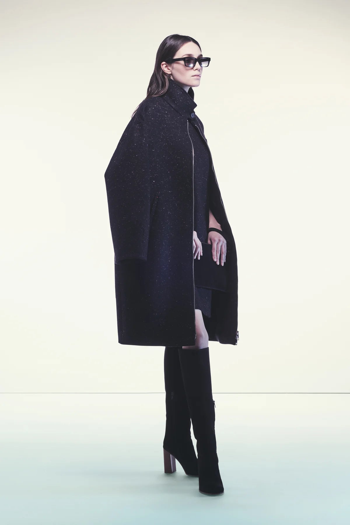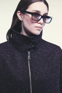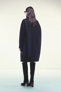 CAPPOTTO IN PANNO CASHMERE BOTTONATO. LINEA AMPIA, COLLO DOLCEVITA CON BOTTONI, ZIP CENTRALE, MANICHE AMPIE, LUNGHEZZA TRE QUARTI. TASCHE LATERALI A FESSURA INVISIBILI.